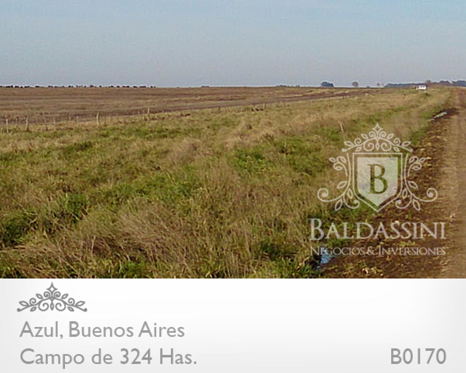 CAMPO AGRÍCOLA DE 320 HAS EN AZUL, CAMPAZO! CON MUY BUENOS RINDES, HAY UNA PORCIÓN PARA GANADERÍA SOBRE EL ARROYO AZUL. MUY BUENOS ACCESOS.