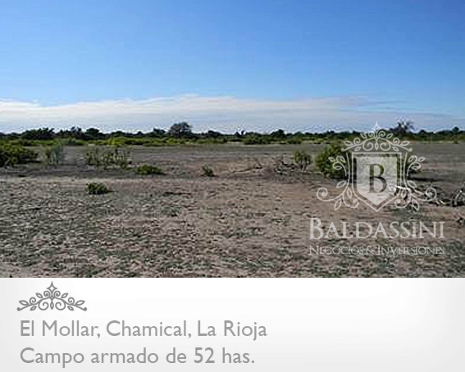 CAMPO ARMADO DE 52 HAS. EN ZONA DEL MOLLAR, CHAMICAL, LA RIOJA TOTALMENTE ALAMBRADO. CON ESCRITURA. MEJORAS: 1 CASA CASERO - 1 CASA PRINCIPAL CON INSTALACIÓN ELÉCTRICA y SANITARIA COMPLETA - 1 DEPÓSITO - 1 POZO DE BALDE CON MOLINO DE VIENTO COMPLETO y EQUIPO DE BOMBEO INSTALADO - 1 PERFORACIÓN DE 20 mts CON AGUA - 3 CORRALES - 3 PARIDERAS PORCINAS - 2 AGUADAS - ÁRBOLES FRUTALES - 4 Ha CON BUFFEL GRASS RÍO ATRAVIESA EL CAMPO. IDEAL PROYECTO GANADERO A PEQUEÑA ESCALA - FEEDLOT DATOS: es un campo ubicado en zona productora ganadera, apícola, olivares, nogales, almendros, verduras, entre otros. Está ubicada frente antigua ruta nacional, se Que ingresar perfectamente en épocas de lluvias. Baldassini Negocios & Inversiones www.baldassini.com.ar - info@baldassini.com.ar - +54 11 4027 7194 - +54 11 4214 7875