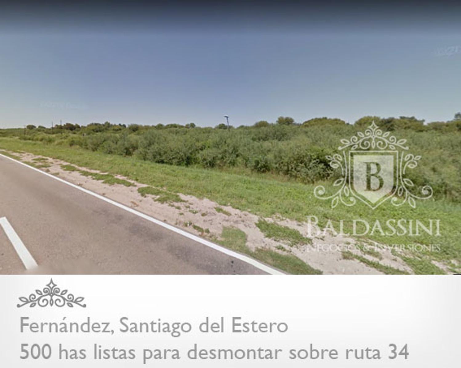 CAMPO DE 500 HAS ENTRE FERNÁNDEZ Y TABOADA SOBRE RUTA 34 - SANTIAGO DEL ESTERO. CON PERMISO DE DESMONTE DEL 90 %