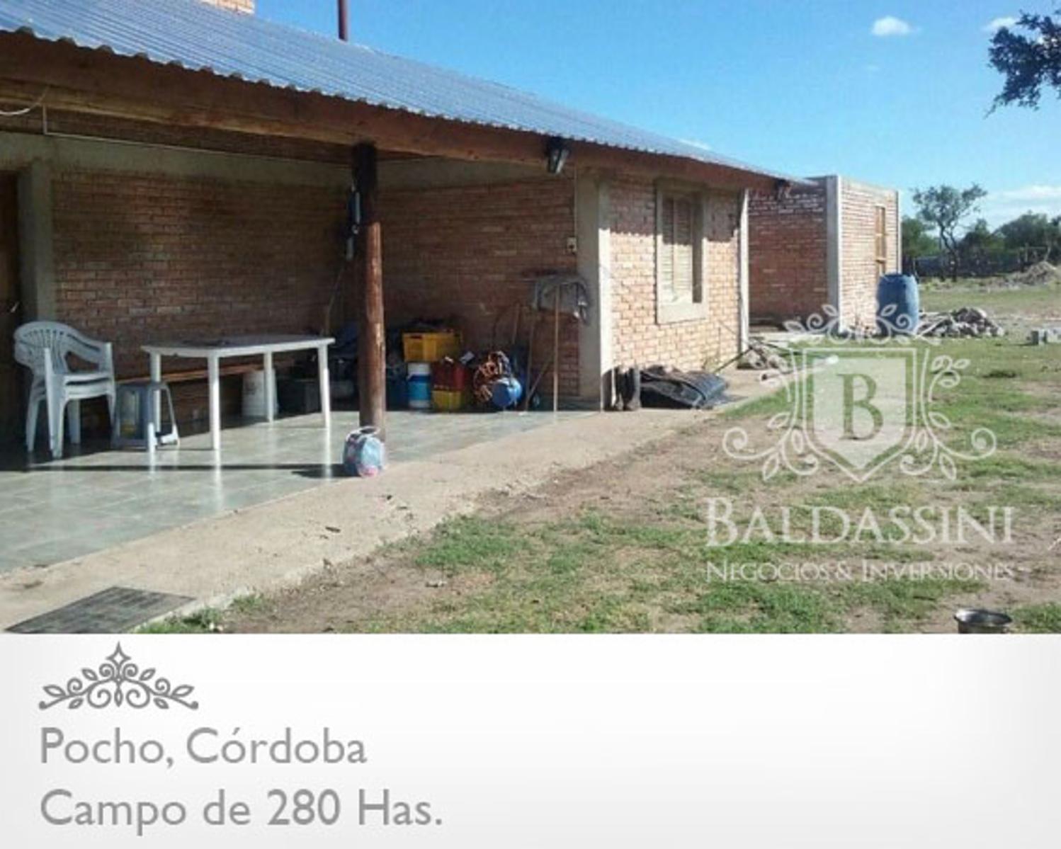 SE VENDE CAMPO DE 280 HECTÁREAS, EN PAMPA DE POCHO, PCIA DE CÓRDOBA Se vende campo de 280 Has de superficie, en la localidad de Pampa de Pocho, Prov. de Córdoba el mismo cuenta con la mitad para siembra, casa, galpón, agua, luz, corrales, bretes, etc. Todas las instalaciones nuevas. Ubicado a 25 km de ruta 15, sobre camino próximo a ser pavimentado. Valor: 2.200 dólares por Ha. Para mayor Información comuníquese con nosotros: Inmobiliaria Baldassini +54 11 4027 7194 (whats app) +54 11 4244 7561 www.baldassini.com.ar info@baldassini.com.ar
