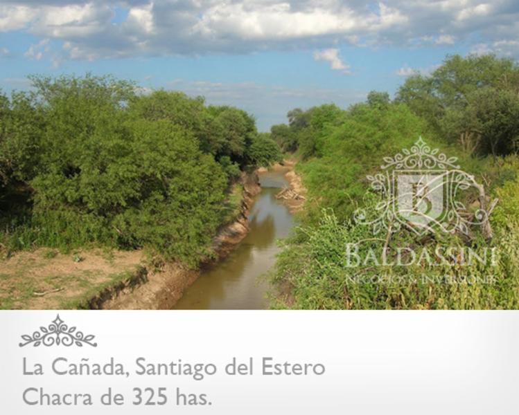 Gran oportunidad Campo de 325 hectáreas con sustanciales mejoras en Santiago del Estero LISTO PARA ESCRITURAR CON TÍTULOS AL DÍA Y PLANO DE MENSURA. A 75 km de La Banda, y a 25 Km de La Cañada. Excelente perfil para cría de ganado. Mejoras: Galpón parabólico de 150 m2, con 7 mts de alto. Vivienda de 3 ambientes. Sala de extractar miel operativa. Aljibe de 35.000 litros con recuperación desde el techo del galpón. Molino de viento con otro tanque de acopio de 30.000 litros para riego y bebedero de animales. Potrero de 4 hectáreas y potrero de 60 hectáreas separado, ambos alambrados en 2012 con 5 hilos. Tiene una para captar señal de celular. Aptitud: El campo posee aptitud agrícola o ganadero el 100. Está rodeado por el río dulce y por un brazo del mismo, Tiene 15 has desmontadas de monte chico,trabajo selectivo para siembra de pasturas para engorde de ganado, 5 has limpias para siembra y 1 ha parte con alfalfa y parte para verduras,legumbres, maíz, zapallos y demás productos para consumo humano protegida con malla de alambre afirmada al suelo con cemento, agua en abundancia, surgente y del río dulce. Campo con buen monte para carbón o leña. El frente del campo y el fondo del mismo lindan con ríos, lo que garantiza capacidad de riego permanente durante todo el año. Las mejoras incluyen la generación de luz eléctrica permanente por paneles solares y arreglos de batería, agua caliente por termo tanque solar, vivienda de 2 dormitorios en muy buenas condiciones. La facilidad de entrada y salida al campo esta garantizada por un puente propio sobre el río, y buenos accesos desde la ruta. El conjunto de la propiedad es mas que interesante ya que es una explotación agropecuaria en actividad y con mucho potencial de mejora. Consulte por memoria descriptiva con todas las mejoras, y por alternativas de mas Hectáreas en la zona Mayor Información: Baldassini Negocios & Inversiones - www.baldassini.com.ar - info@baldassini.com.ar - Whatsapp +54 9 11 4027 7194 - +54 11 4244 7561